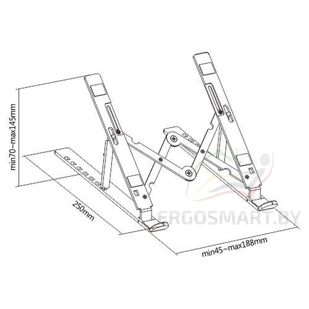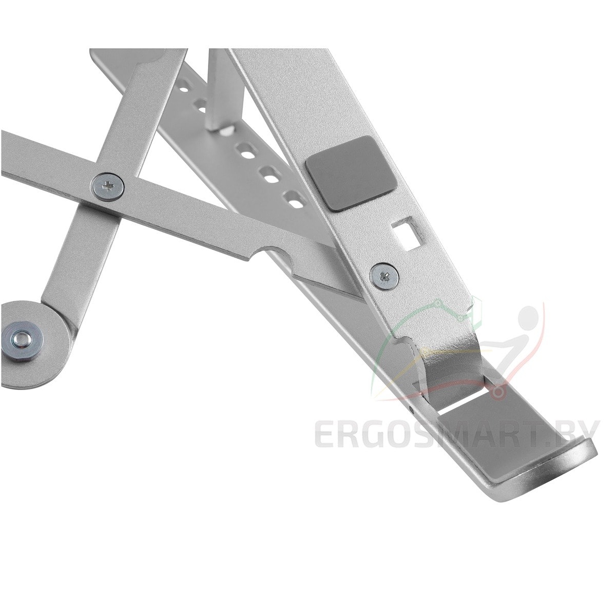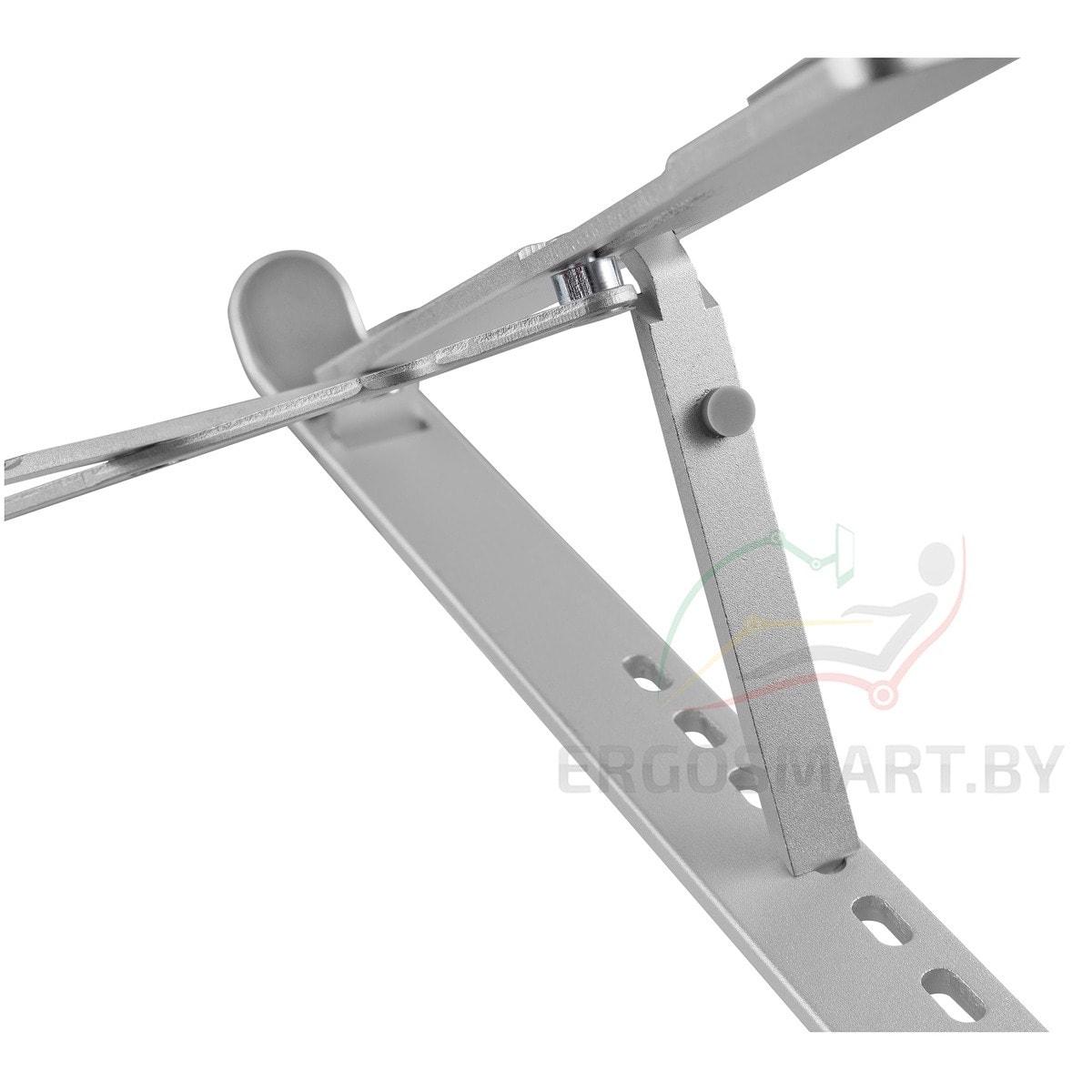 Прочная и легкая треугольная конструкция из алюминиевого сплава выдерживает нагрузку до 5 кг и подходит для ноутбуков диагональю 11"-15".