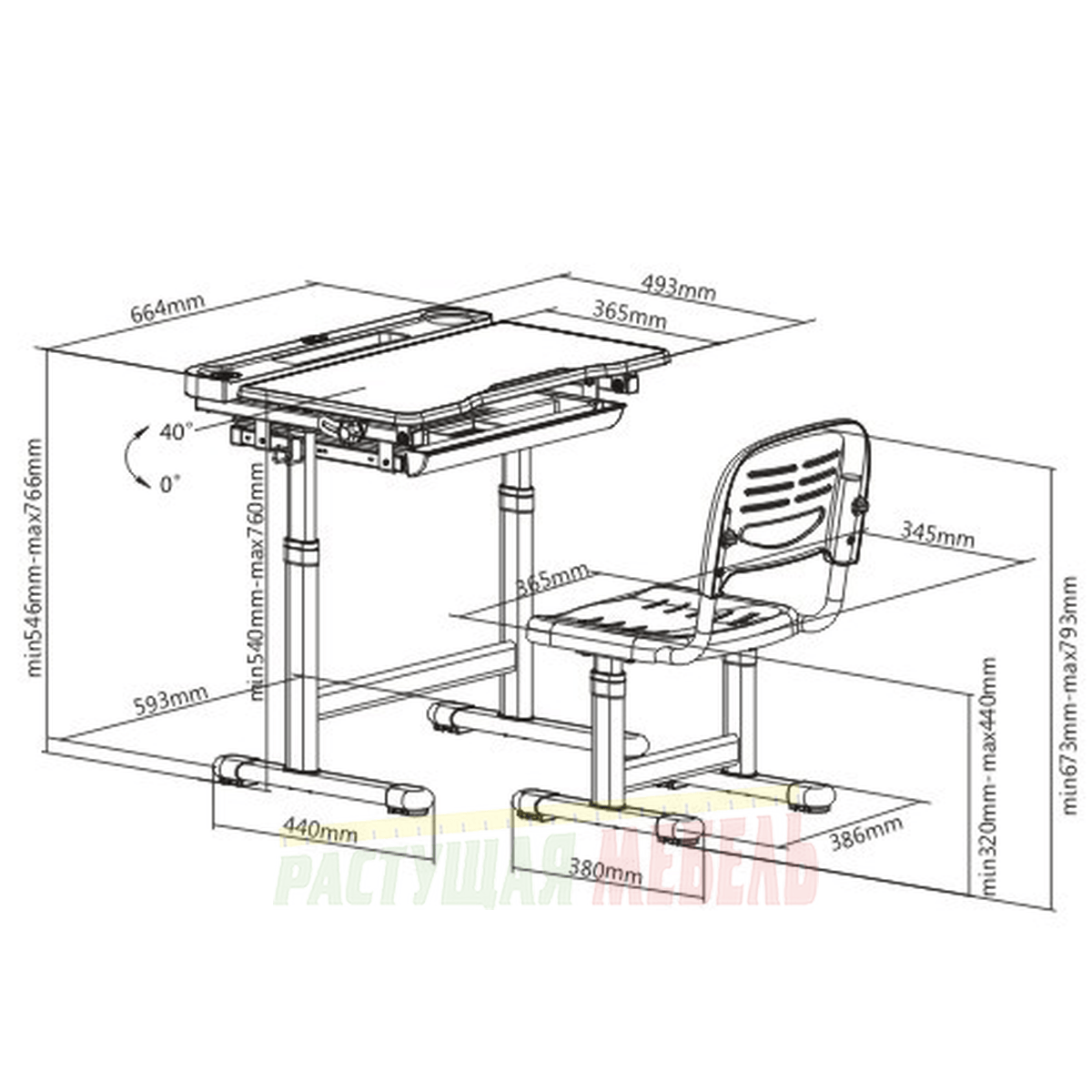 Главные преимущества - надежность и доступность! Регулировка высоты парты и стула ступенчатая: