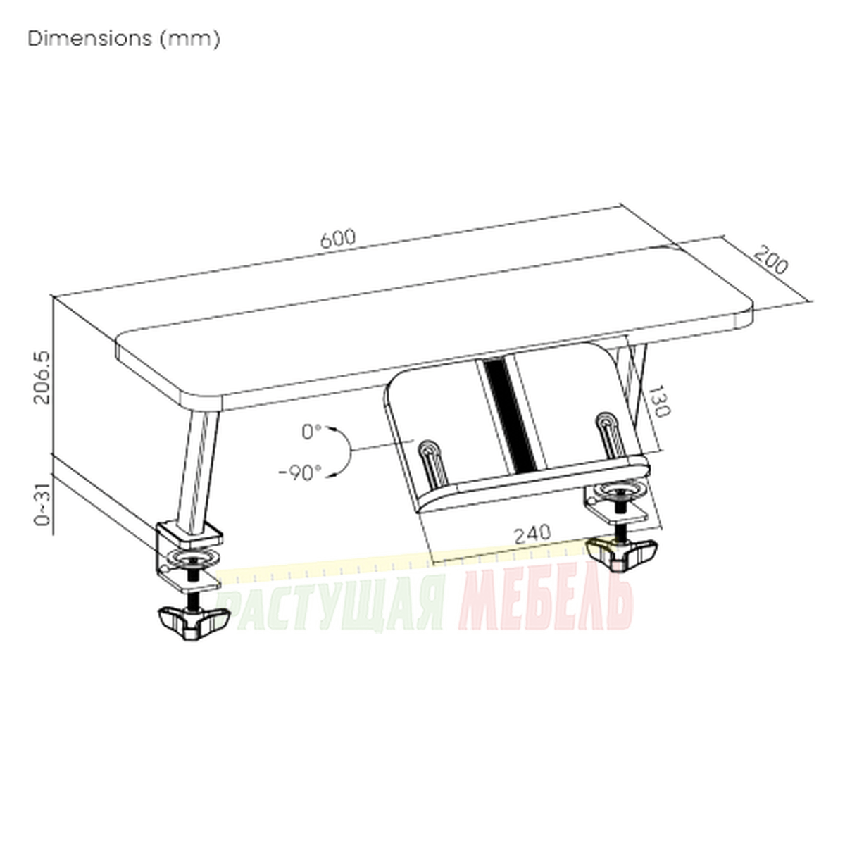 ![]() | Механизм установки к столешнице - струбцина, подходит для столов с толщиной столешницы до 3 см. |