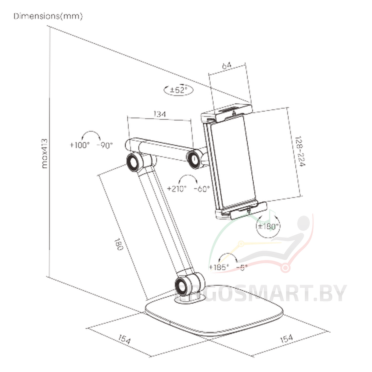 Регулируемый держатель Tablet разработан для планшетов с диагональю 4,7"-12,9" и весом до 1 кг. Большой диапазон регулировок - наклон, вращение и поворот обеспечивает настройку оптимального положения вашего устройства.