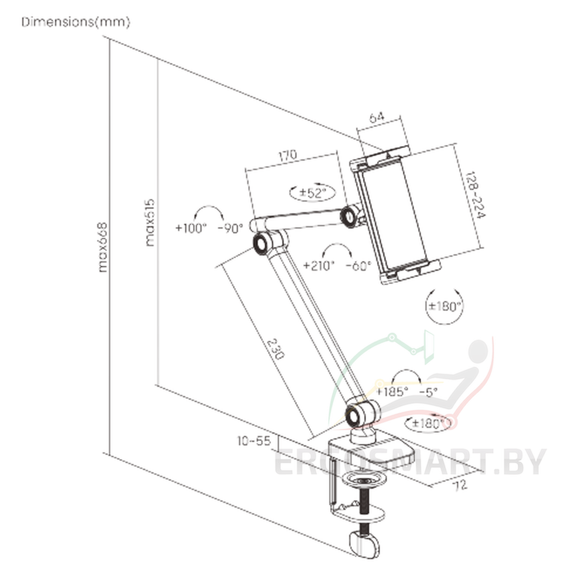 | Габаритные размеры TabletClamp | 145х72х668 мм |