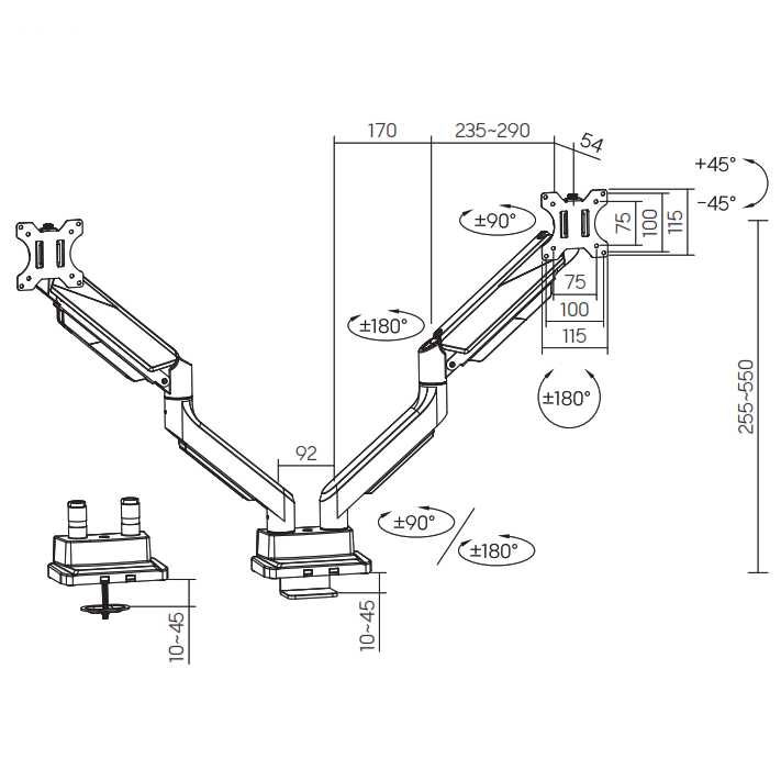 Основные характеристики кронштейна для 2-х мониторов Heavy-Duty DBL:
