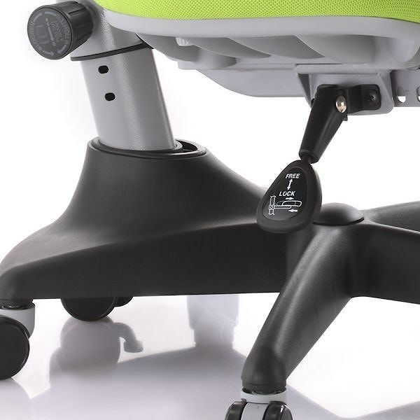 На всех колесах установлены блокираторы вращения. С их помощью можно регулировать степень подвижности стула. С включенными блокираторами не нагруженный стул можно легко перекатывать, под весом сидящего человека у стула перестают вращаться колеса. По желанию можно включать блокираторы на одном, двух, и более колесах, уменьшая степень подвижности стула. Эта функция незаменима при работе за столом, оборудованного выдвижным ящиком под столешницей, очень активного ребенка. Колеса изготовлены из полиуретана средней твердости, что минимизирует воздействие на покрытие пола. Однако, для полной защиты поверхности пола рекомендуем использовать специальное защитное покрытие Comfguard