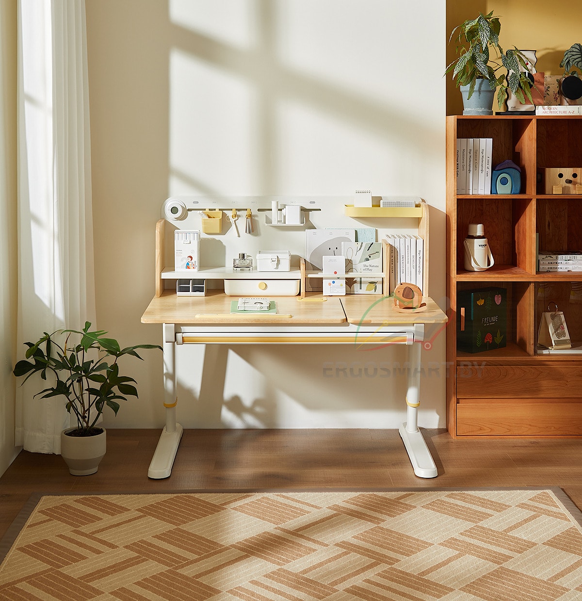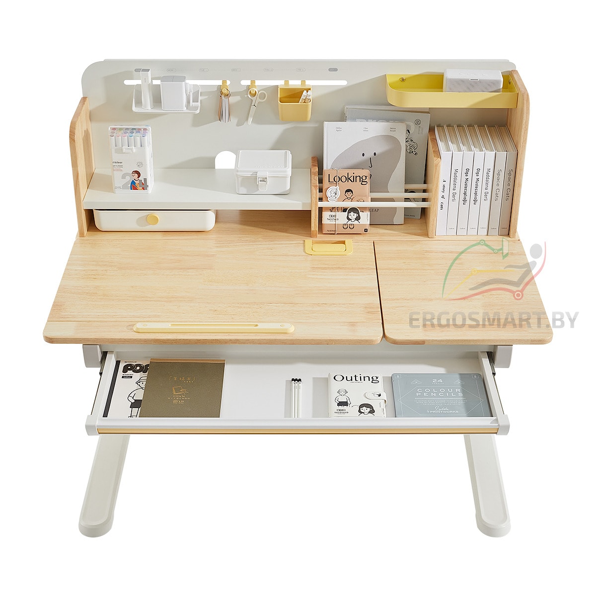 Cтол Galeon в комплекте с книжной полкой премиум натуральная гевея