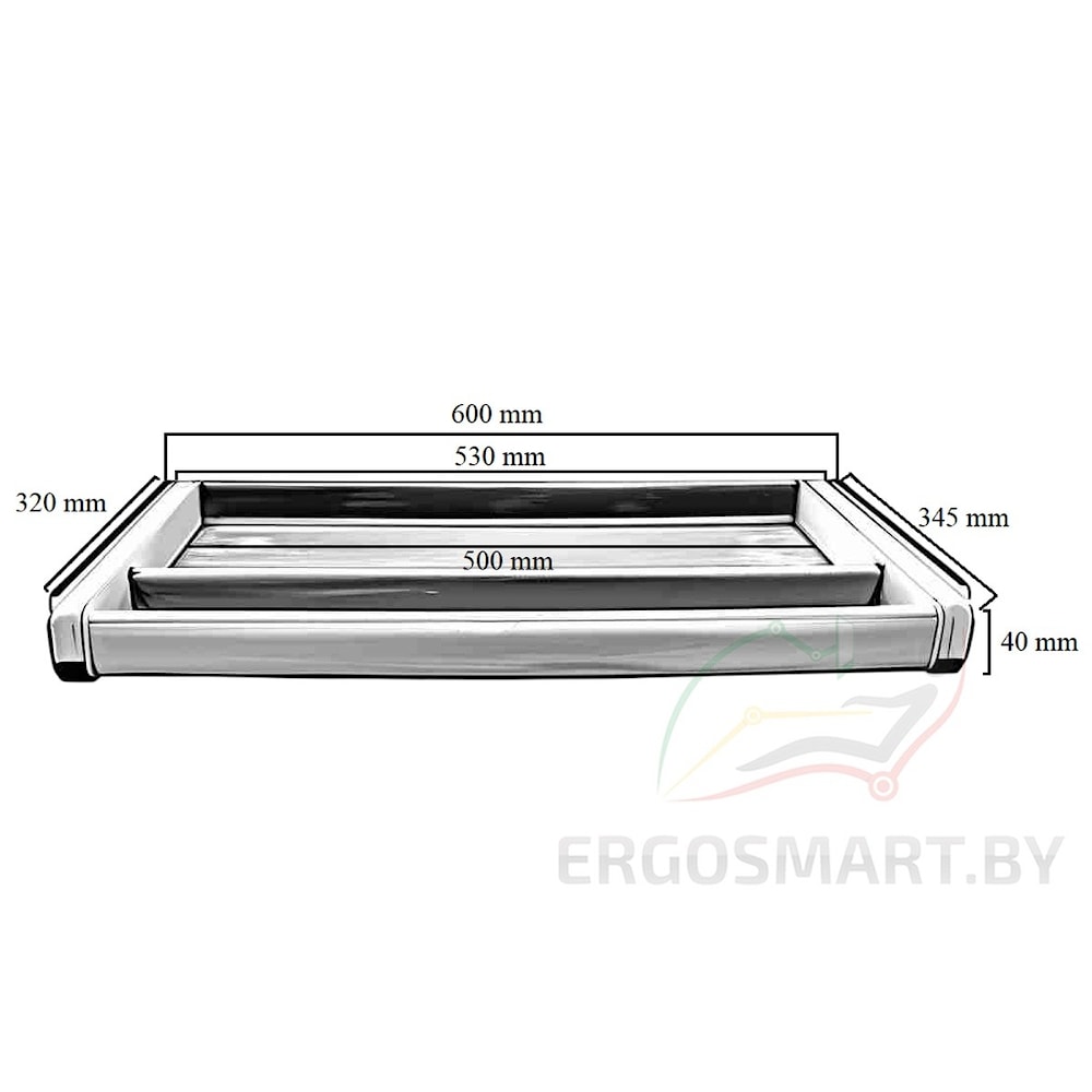 ![]() | Размеры выдвижного ящика Ergosmart VY-1. |