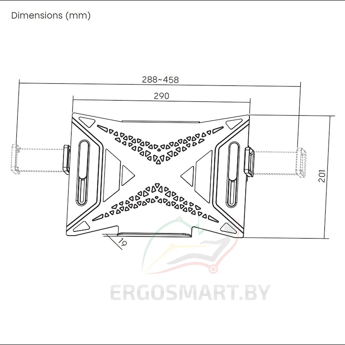 ![]() | Функциональные размеры адаптера-держателя для ноутбука Lapter X. |
