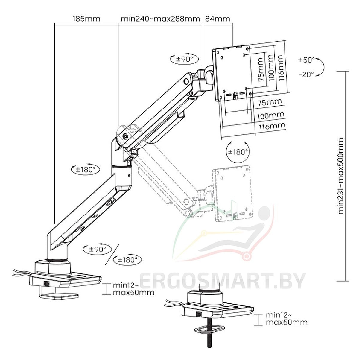 Преобразите свое рабочее пространство с нашим стильным и функциональным кронштейном для монитора- Heavy-Duty Lux ll! Этот универсальный аксессуар подходит для экранов с диагональю от 17 до 49 дюймов и выдерживает нагрузку до 20 кг, что делает его идеальным решением для любого пользователя.