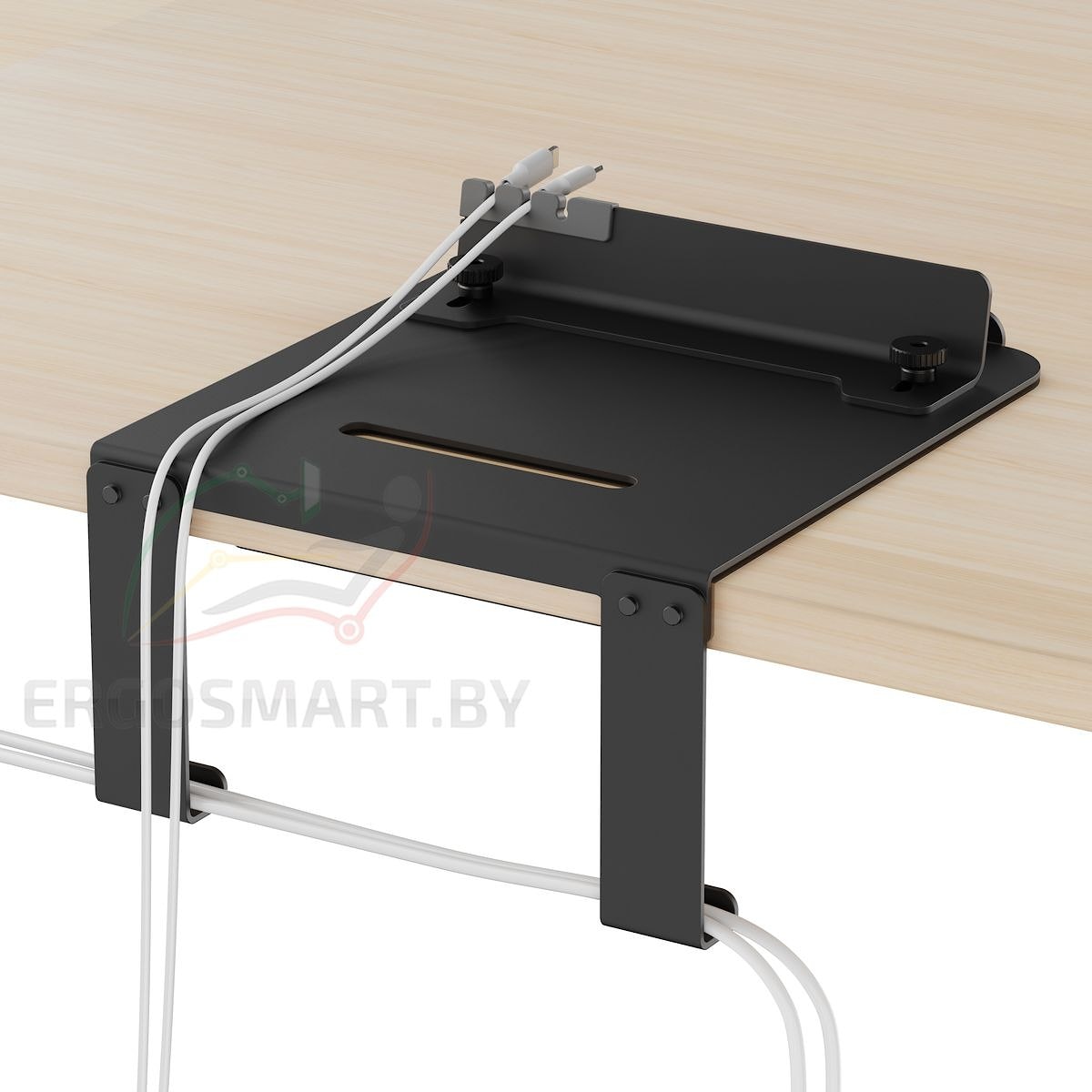 - Органайзер-проводов: провода можно аккуратно разместить под столом и на столе благодаря встроенным крючкам и отсекам, помогая держать их под рукой и предотвращая спутывание.