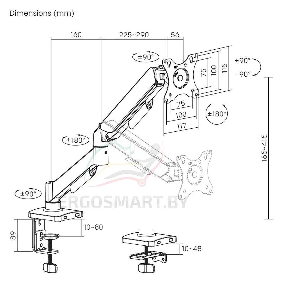 | Вращение кронштейна | +180/-180 ° |