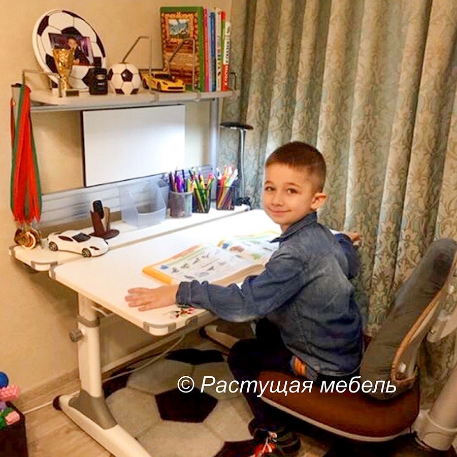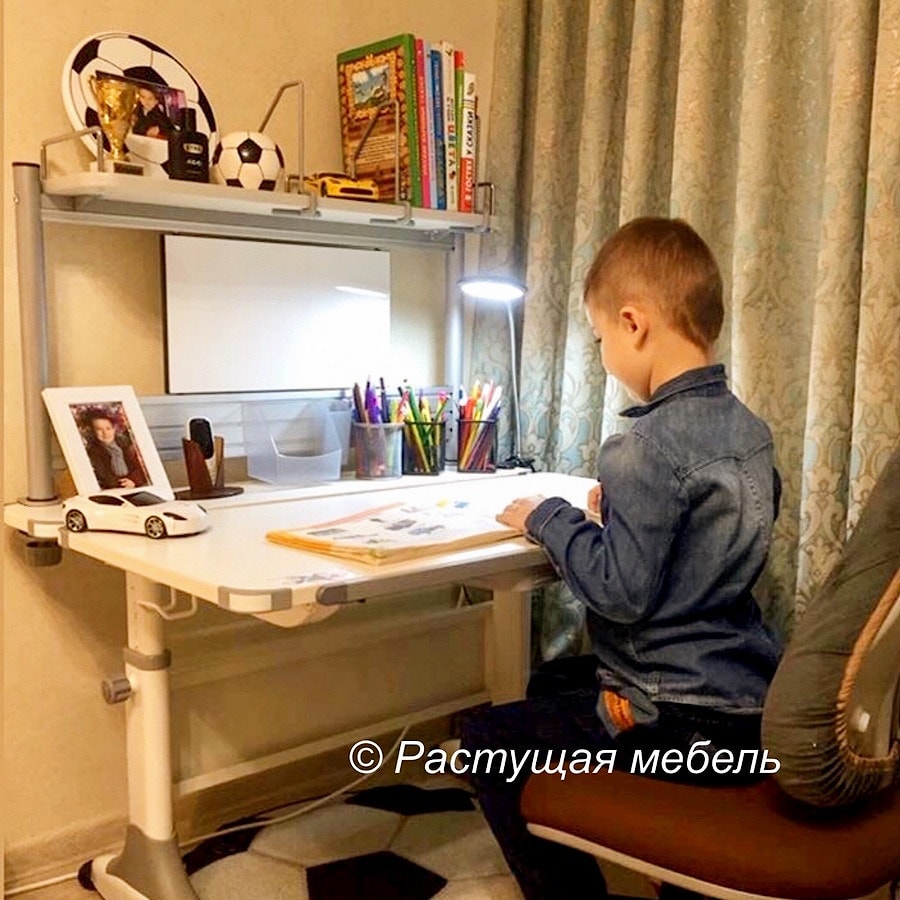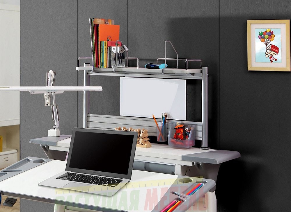 Третий верхний ярус - полка для книг с боковыми ограничителями против падения. Полка также имеет держатели книг, что предотвратит беспорядок. На верхнем ярусе легко разместятся высокие папки для деловых записей, книги, тетрадки и мини-блокноты.