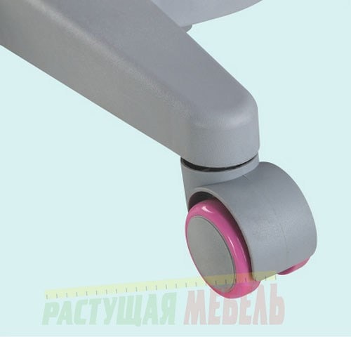 Модель стула может быть в 2-х расцветках (голубой и розовой), а также имеет декор на крестовине и колёсах в тон сиденья и спинки.