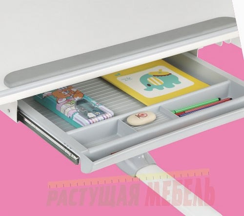 ![]() | Конструкция регулировки высоты позволяет столу расти вместе с ребёнком. |