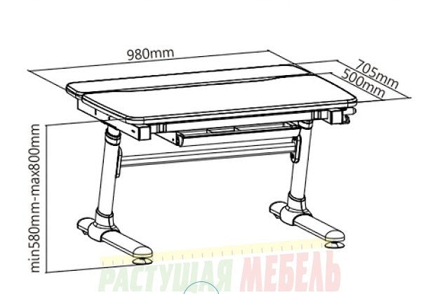 Детский стол-парта Smart E501 регулируется по высоте от 58см до 80см при помощи специальной ручки. Такая регулировка позволит ребёнку без помощи взрослых настроить стол на нужную высоту.