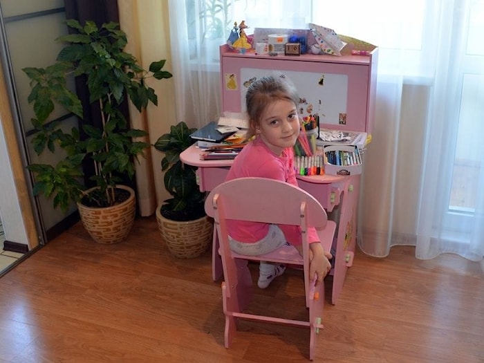 Учится Ксюша в 1-м классе гимназии и является одной из лучших учениц класса. Очень любит рисовать, мастерить поделки и заниматься прочими видами творчества.