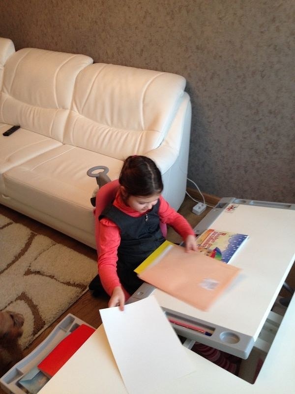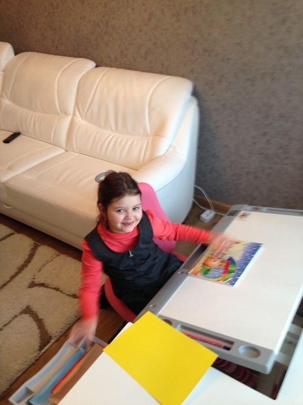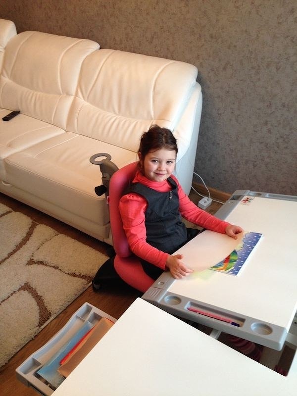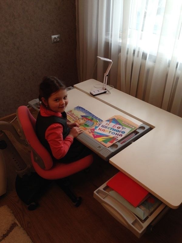 Нашей Еве шесть лет, за любым столом она устаёт, т.к. нужно тянуться к нему и наклонять не удобно голову, а эта парта и стульчик сами подстраиваются под рост и осанку ребенка. Нашей доченьке очень нравится чувствовать себя ученицей за такой взрослой и одновременно детской партой на супер классом стуле"