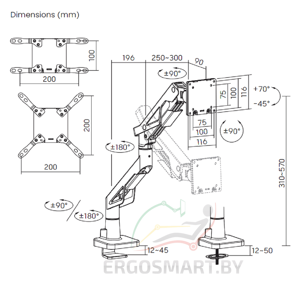 | Расширение к пластине VESA | 75х75, 100х100, 100х200, 200х100, 200х200 |