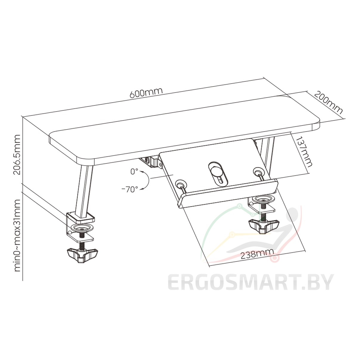 | Механизм регулировки наклона столешницы | бесступенчатый от 0° до 50° |