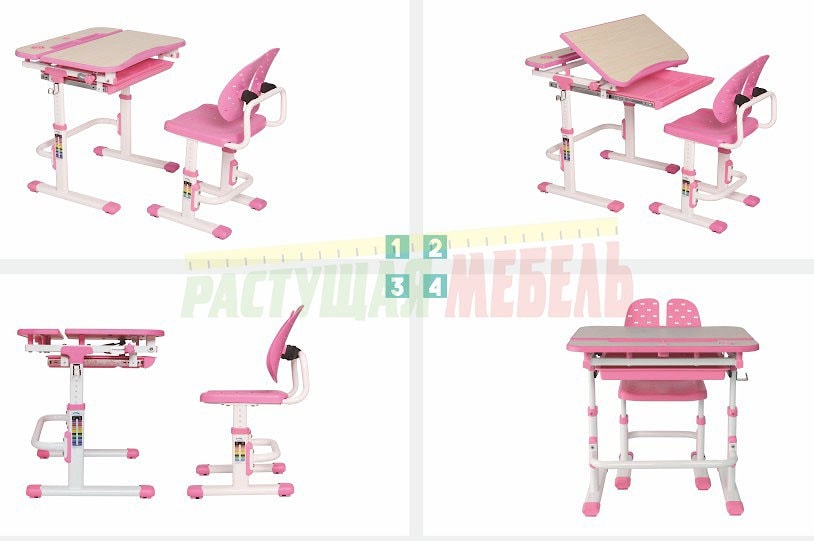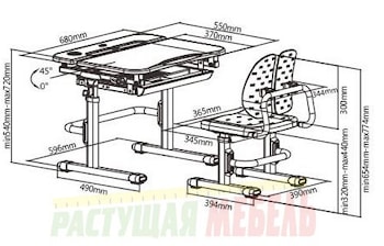 ![]() | Конструкция регулировки высоты позволяет столу расти вместе с ребёнком. |